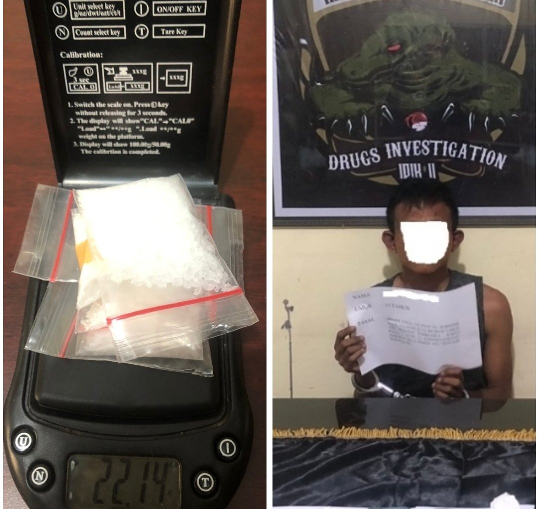 Dari tangan pelaku, aparat mengamankan Barang Bukti (BB), sebanyak 22,14 gram shabu tersimpan didalam klip bening serta satu pucuk senjata api rakitan.