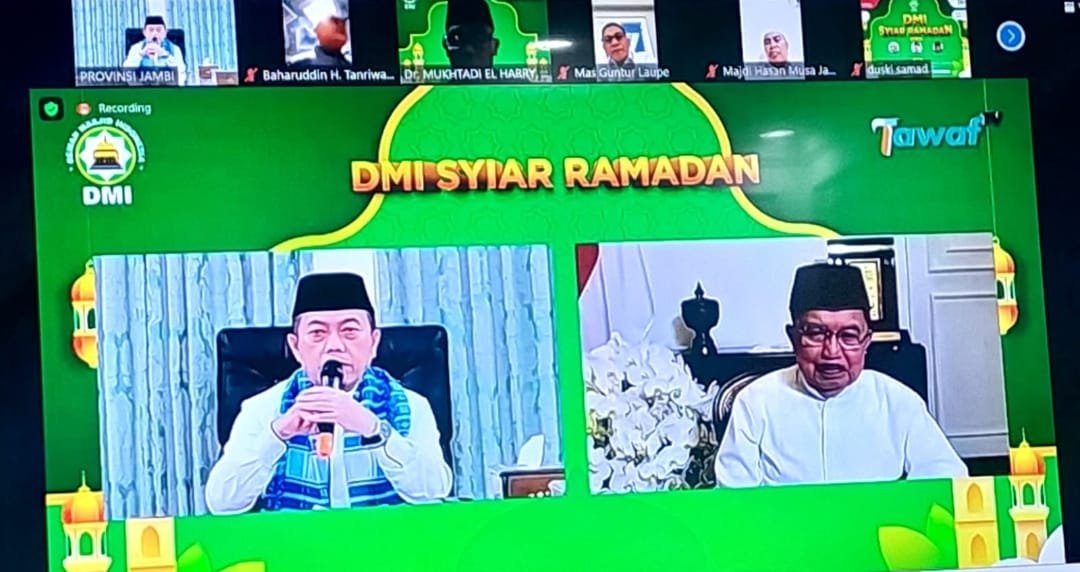 Acara yang dilaksanakan secara virtual itu, dihadiri oleh Ketua Umum PP DMI H. M Jusuf Kalla, dan Ketua Pimpinan Wilayah DMI Provinsi Jambi beserta Jajarannya.