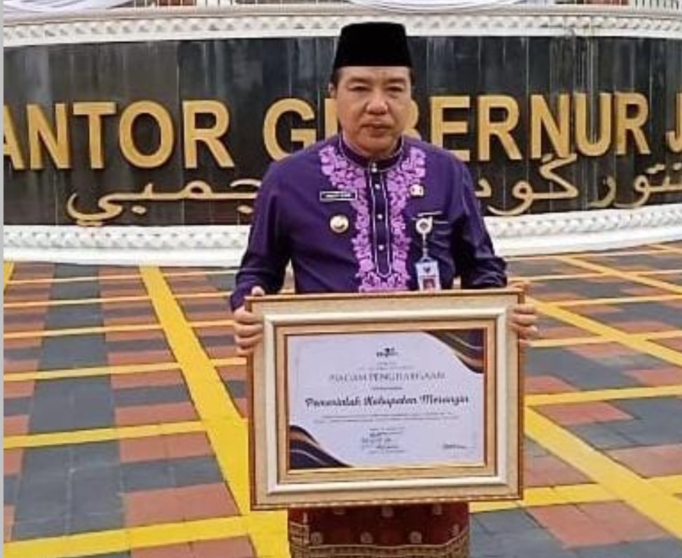 Penghargaan bergensi itu diserahkan di halaman Kantor Gubernur Jambi, disaksikan Wakil Gubernur Jambi Abdullah Sani dan jajarannya, para bupati/walikota se-Provinsi Jambi dan seluruh peserta upacara HUT Jambi ke-67.