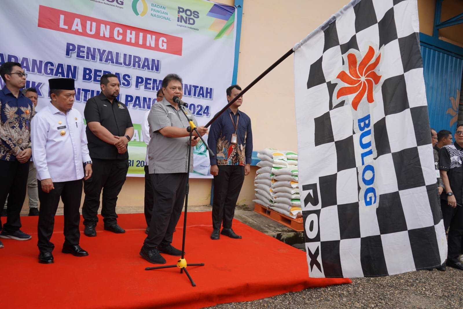 Sebelumnya, Menko Airlangga Hartarto dalam sambutannya menjelaskan bahwa hari ini baru disalurkan secara simbolis sebanyak 1 ton beras untuk 100 warga penerima.