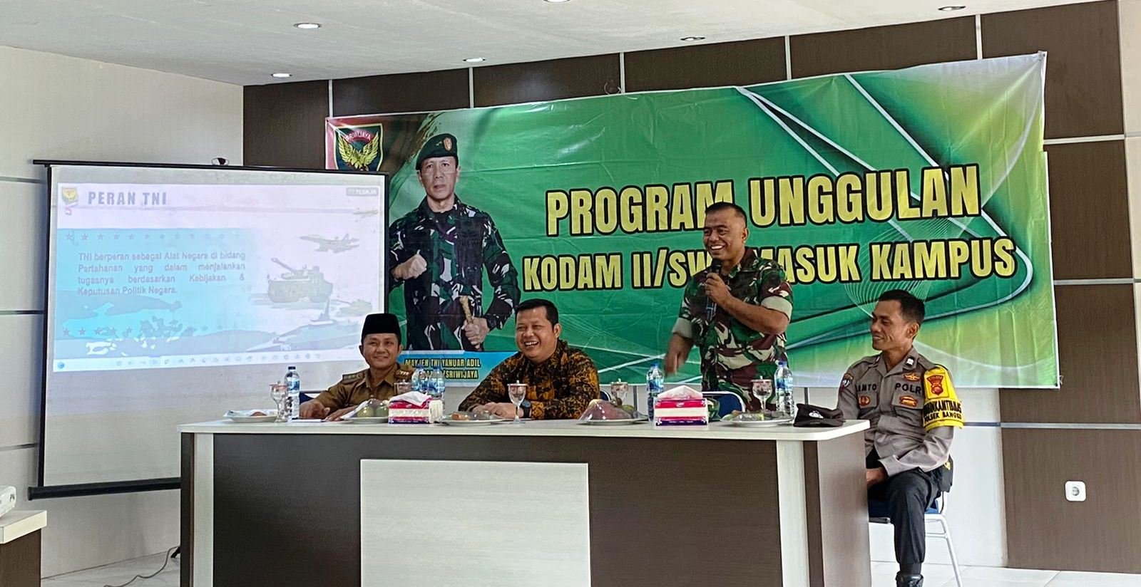 Pada sambutannya, Rektor Universitas Institut Agama Islam Syekh Maulana Qori Bangko, Muhammad Thoiyibi, menyampaikan apresiasi tinggi terhadap Program Unggulan Kodam II/Sriwijaya Masuk Kampus. Dia menilai kehadiran TNI di kampus memberikan pemahaman lebih baik mengenai TNI dan program unggulan Kodam II/ Sriwijayabterhadap generasi muda.