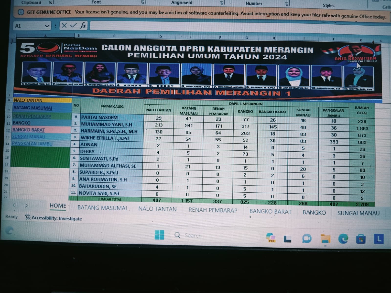 “Alhamdulillah, atas kerja keras bersama dan kerja sama tim sebagai mana tekat kita bersama Bersatu Berjuang Menang.Dengan perolehan suara ini Insya Allah NasDem masuk semua dapil. Suara yang masuk sementara sudah mencapai angka 98%, sembari menunggu hasil resmi dari KPU Merangin,”papar anggota DPRD aktif ini.