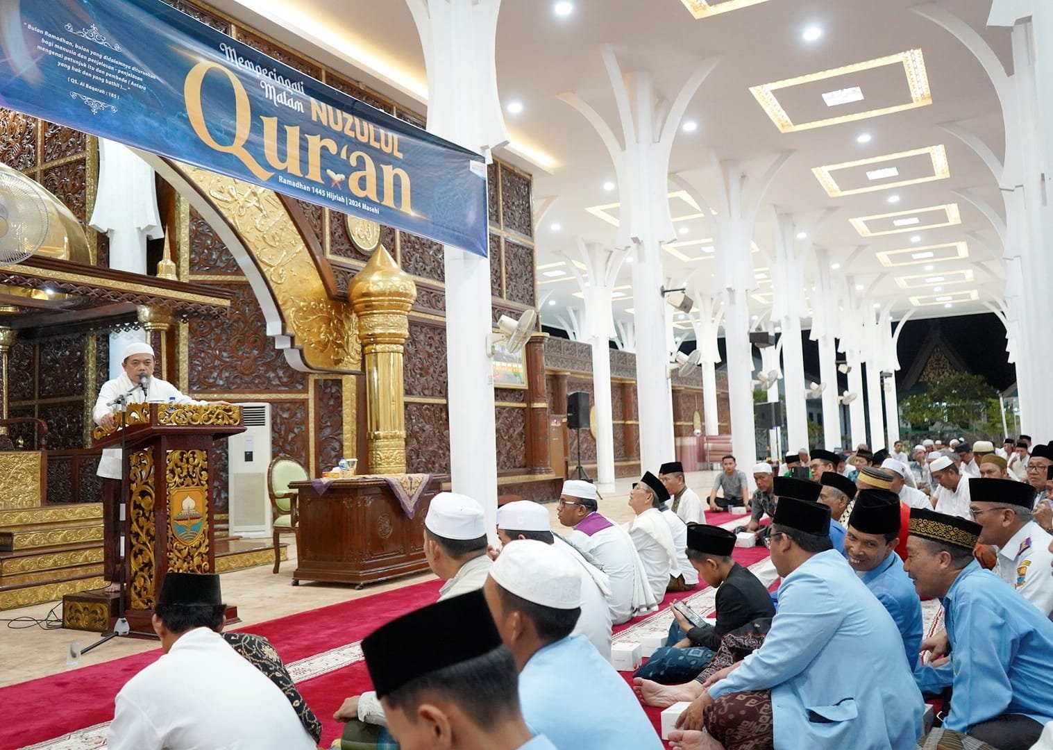 JurnalOne.com, JAMBI – Gubernur Jambi, Al Haris memperingati malam Nuzul Qur’an 1445 H / 2024 M, di Masjid Agung Al-Falah Jambi, Rabu (27/03/2024) malam.