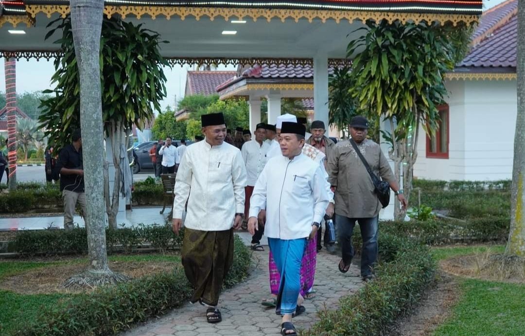 Usai silaturahmi dan buka bersama di Rumah Dinas Bupati Tebo, Gubernur Jambi Al Haris didampingi Pj Bupati Tebo Aspan sholat Isya dan Tarawih di Masjid Darul Hikmah, Dusun Rimbun Sari, Desa Sungai Rambai, Kecamatan Tebo Ulu.