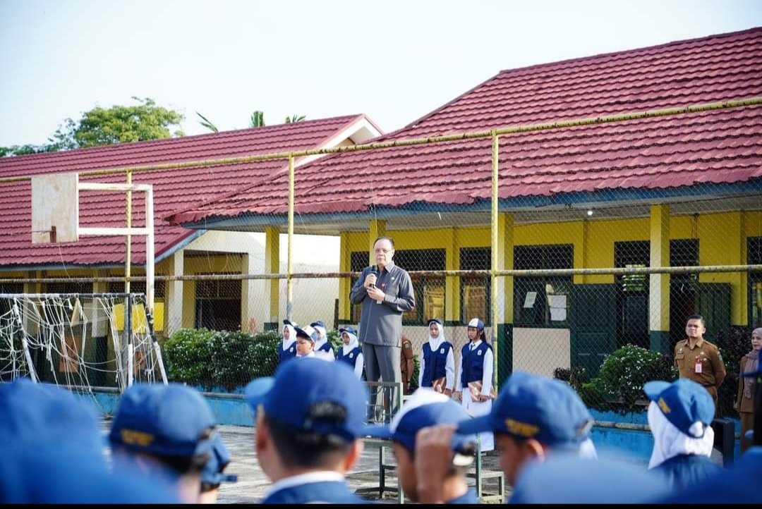 JurnalOne.com, TEBO – Pj Bupati Tebo, Varial Adhi Putra, meninjau secara lansung siswa dan siswi SMPN 1 Muara Tebo, saat pertama masuk sekolah pasca libur lebaran, Senen (22/04/2024).