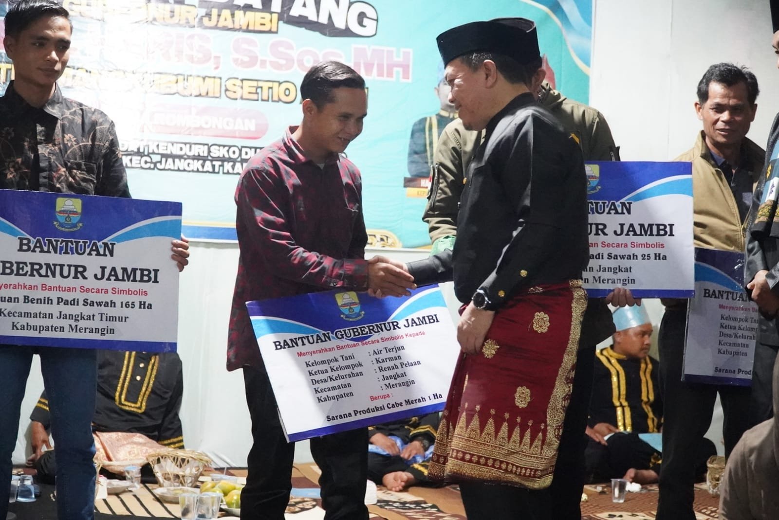 Pada kesempatan tersebut, Gubernur Al Haris juga menyerahkan bantuan modal kerja bagi pelaku UMKM di Kecamatan Jangkat senilai Rp. 55 Juta serta bantuan bibit cabai merah dan saprodi 1 Hektar untuk Kelompok Tani Air Terjun, bantuan bawang merah dan saprodi 1 Hektar untuk Kelompok Tani Rukun Keluarga, bantuan Padi Sawah 25 Hektar di Kecamatan Jangkat, bantuan Padi Sawah di Kecamatan Jangkat Timur, bantuan Power Treser 1 Unit untuk Kelompok Tani Bukit Pandan. (*)