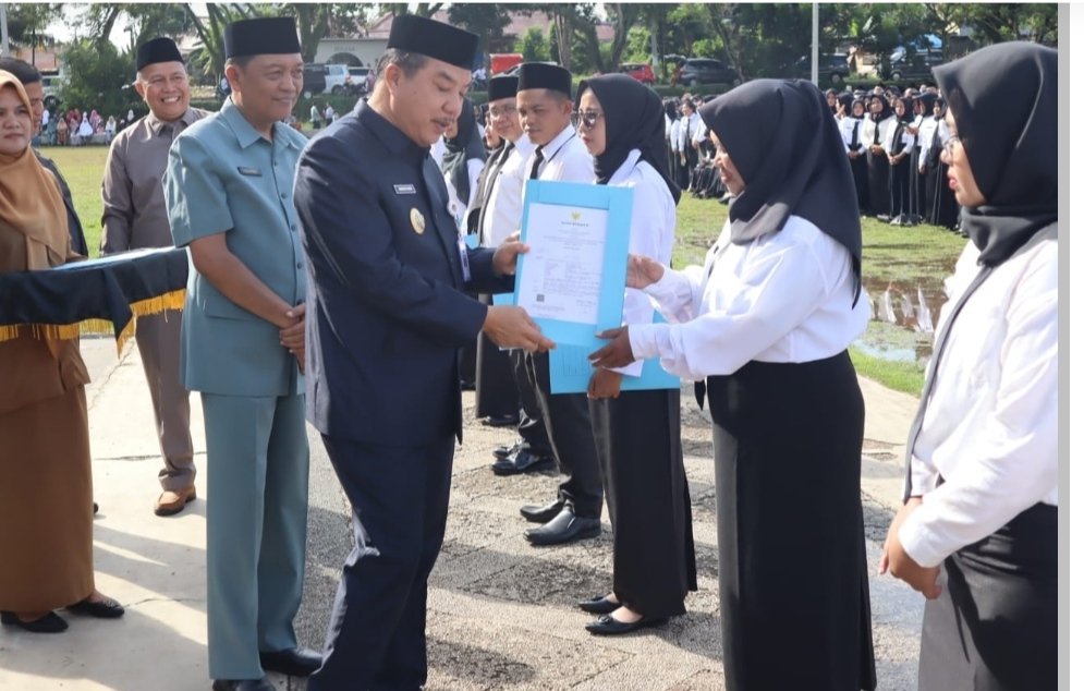 JurnalOne.com, BANGKO – Penjabat (Pj) Bupati Merangin Mukti membagikan sebanyak 1.312 Surat Keputusan (SK) pengangkatan Pegawai Pemerintah dengan Perjanjian Kerja (PPPK) formasi 2023, di halaman depan kantor bupati Merangin, Senin (03/06/2024)