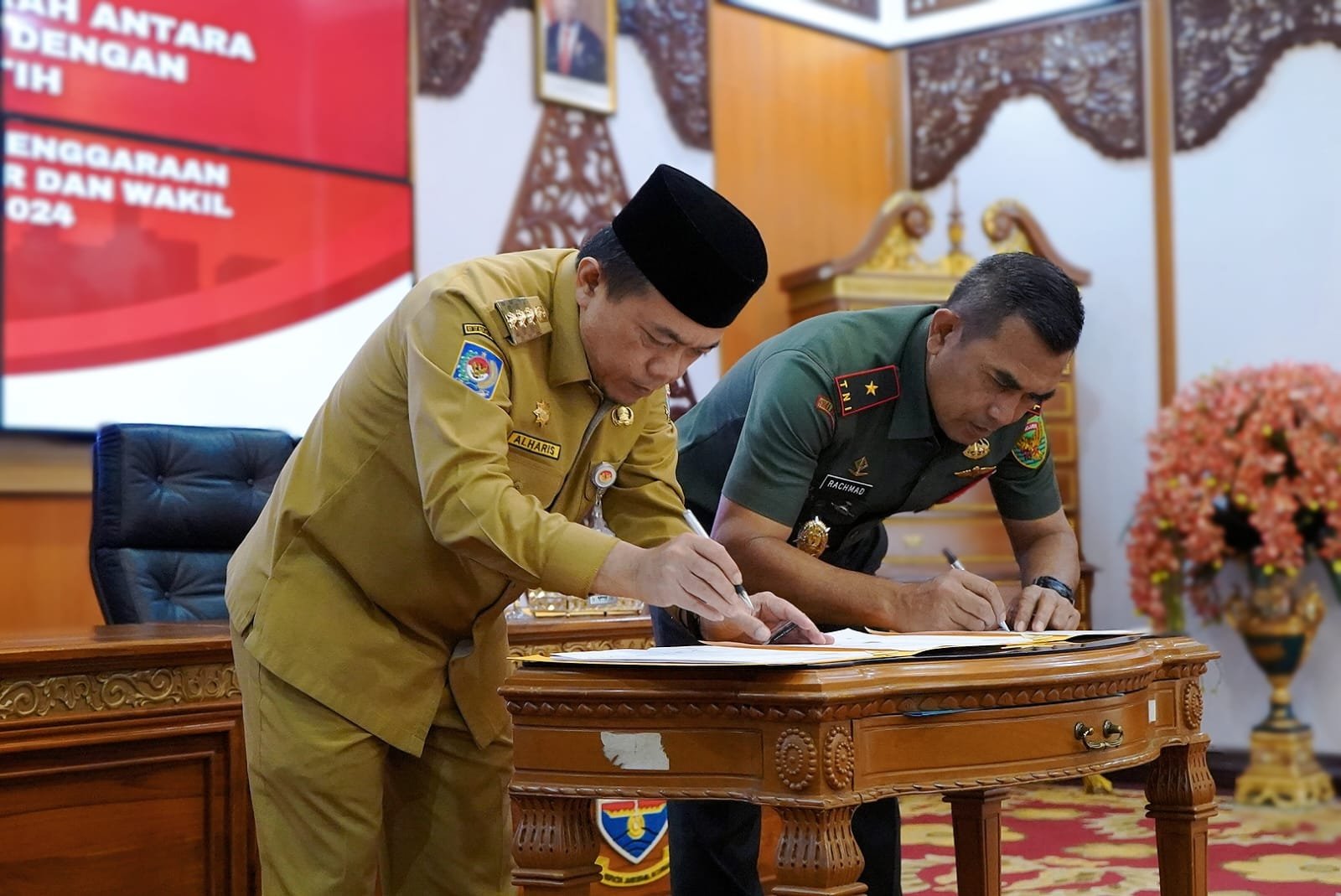 JurnalOne.com, JAMBI – Gubernur Jambi, Al Haris menandatangani Naskah Perjanjian Hibah Daerah (NPHD) Pemerintah Provinsi Jambi dengan Korem 042/Garuda Putih, untuk Pengamanan Pemilihan Gubernur dan Wakil Gubernur Jambi Tahun 2024, di Rumah Dinas Gubernur Jambi, Senin (10/06/2024) kemaren.