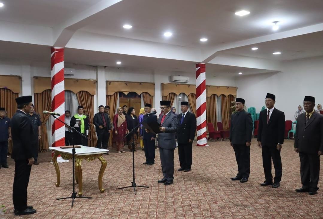 JurnalOne.com, BANGKO – Pj Bupati Merangin Mukti Said, diwakili Sekda Merangin, Ir Fajarman, secara resmi melantik lima eselon II, dan dua jabatan funnsional, di Auditorium rumah dinas Bupati, Kamis malam (20/06/2024).