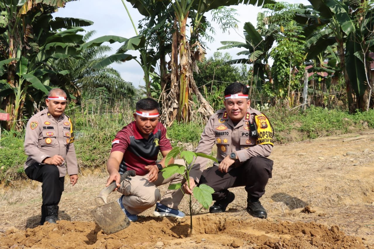 JurnalOne.com, BANGKO – Sambut Hari Bhayangkara ke-78, Polres bersama Polsek Kabupaten Merangin, Jambi, melakukan kegiatan penanaman pohon, Kamis (27/06/2024).