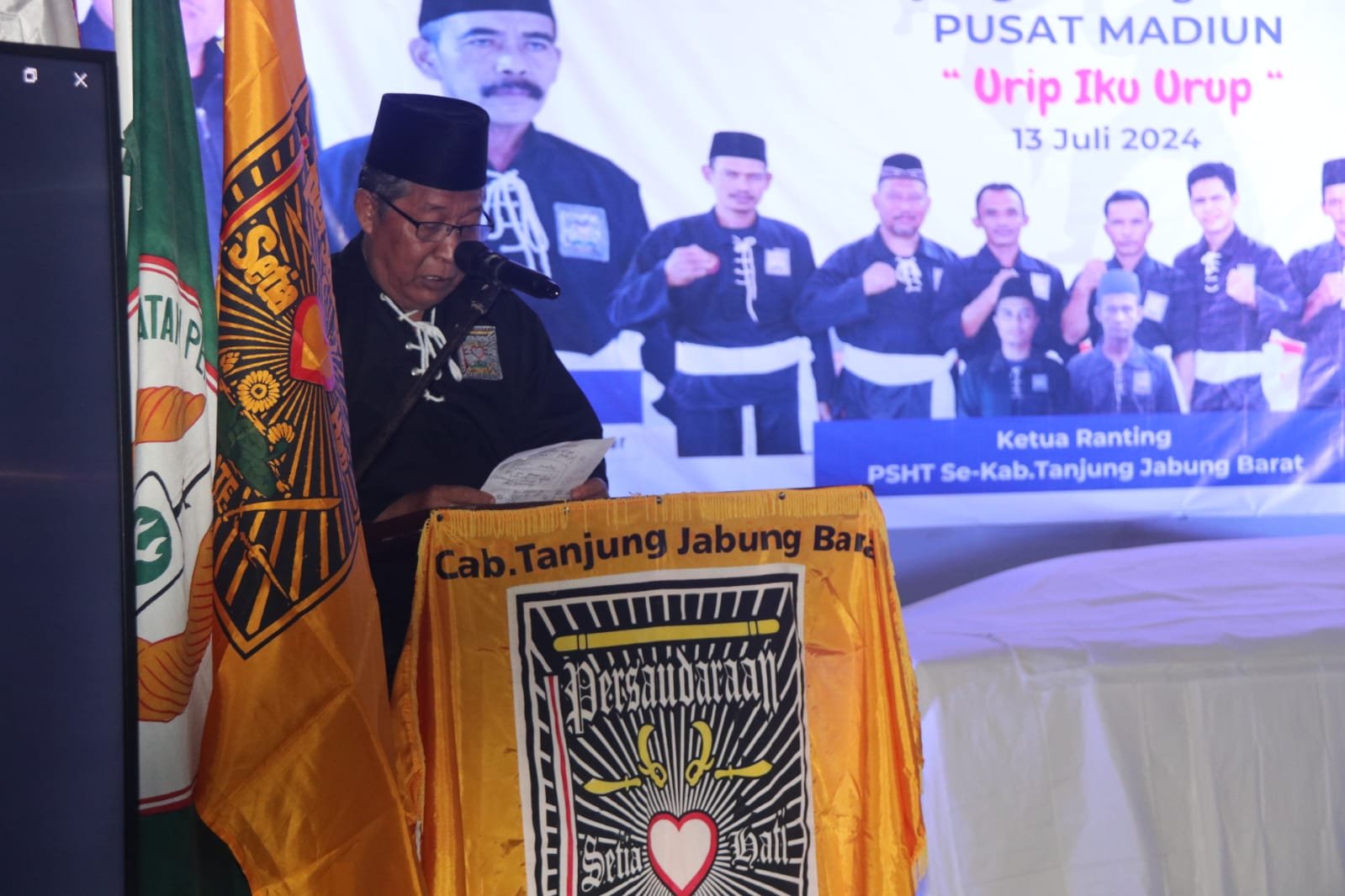 JurnalOne.com, TANJABBAR – Wakil Gubernur Jambi, Abdullah Sani, mengikuti jalannya Pengesahan Warga Baru Tingkat 1 PSHT Madiun, di Gedung Futsal Aneka Jalan Budiman KM 3 Kecamatan Tebing Tinggi, Kabupaten Tanjung Jabung Barat, Sabtu (13/07/2024) malam kemaren.