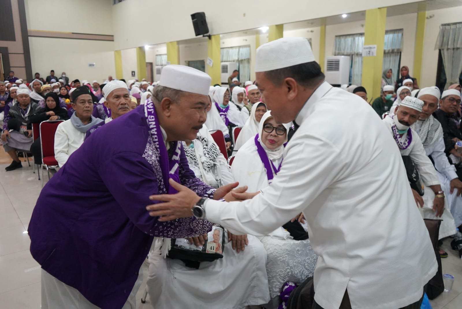 “Semoga kesehatan menyertai Bapak dan Ibu sekalian dan menjadi haji yang mabrur, haji yang baik yang diterima oleh Allah SWT. Selesainya pelaksanaan rukun Islam ke-5, artinya telah menyempurnakan rukun Islam,” sebut Al Haris.