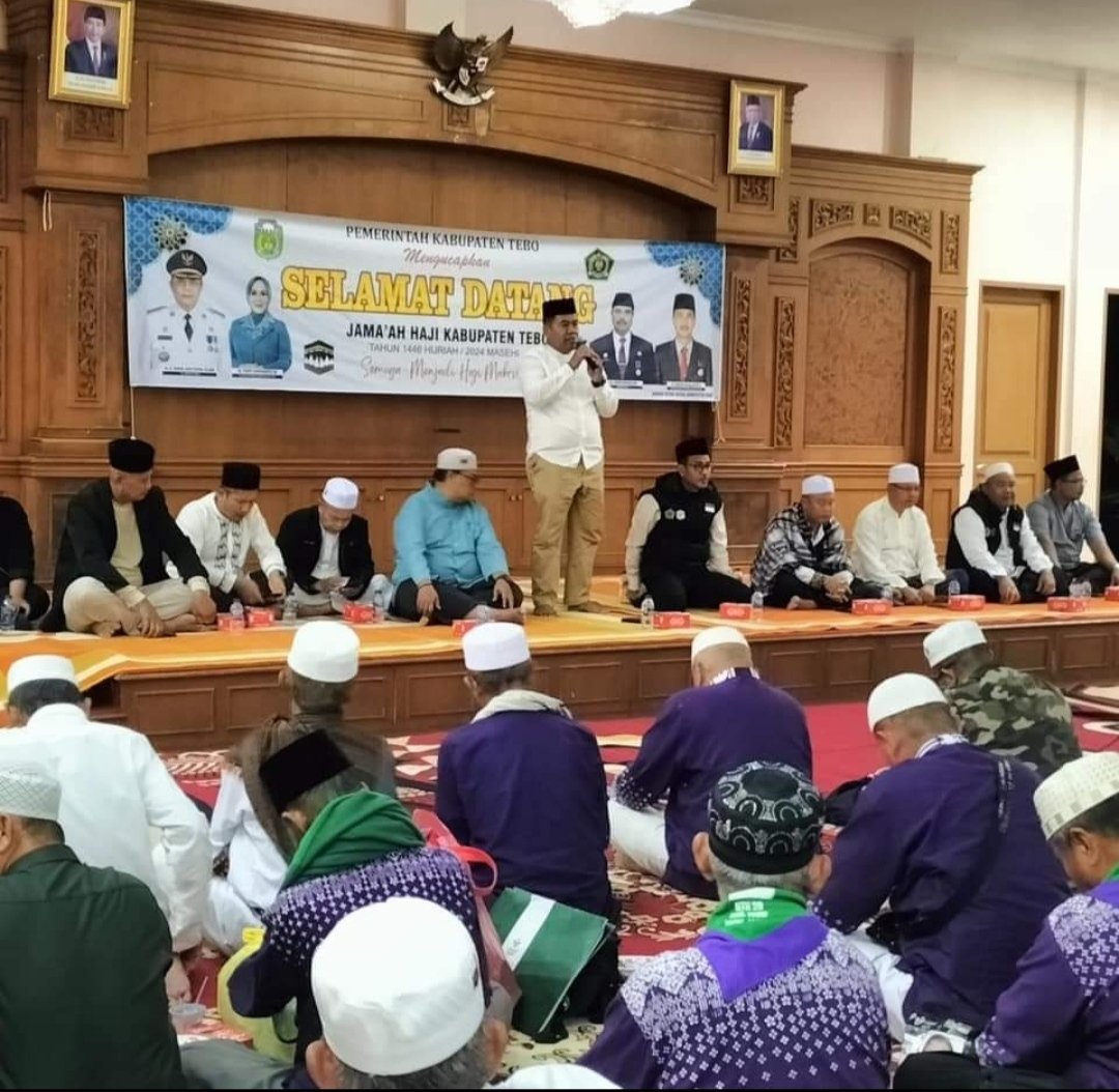 JurnalOne.com, TEBO – Asisten Pemerintah Kabupaten Tebo, Cindi SH menyambut kedatangan jemaah haji sebanyak 189 orang setelah usai melaksanakan rukan Islam kelima di Pendopo Rumah Dinas Bupati Tebo, Selasa (23/08/2024).
