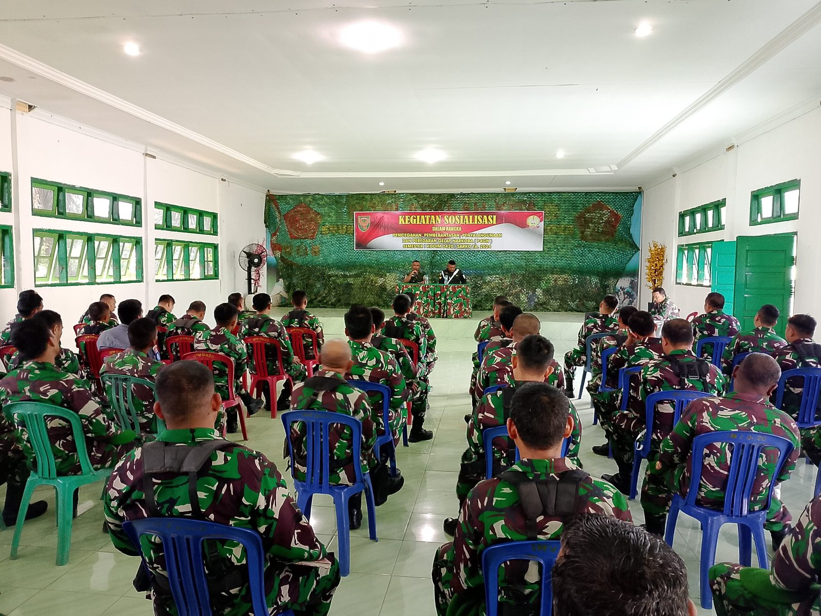 “PG4N ini sangat penting, kegiatan ini untuk mencegah keterlibatan anggota TNI khususnya di Kodim 0420/Sarko dalam penyalahgunaan Narkotika,” tegas Dandim 0420/Sarko Letkol Inf Suyono.