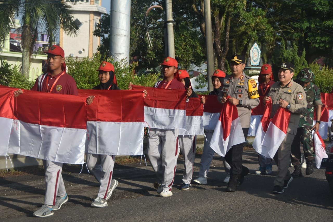 Jelang HUT RI ke 79, Pabung Kodim 0420/Sarko Bagi Bagi Bendera Merah Putih