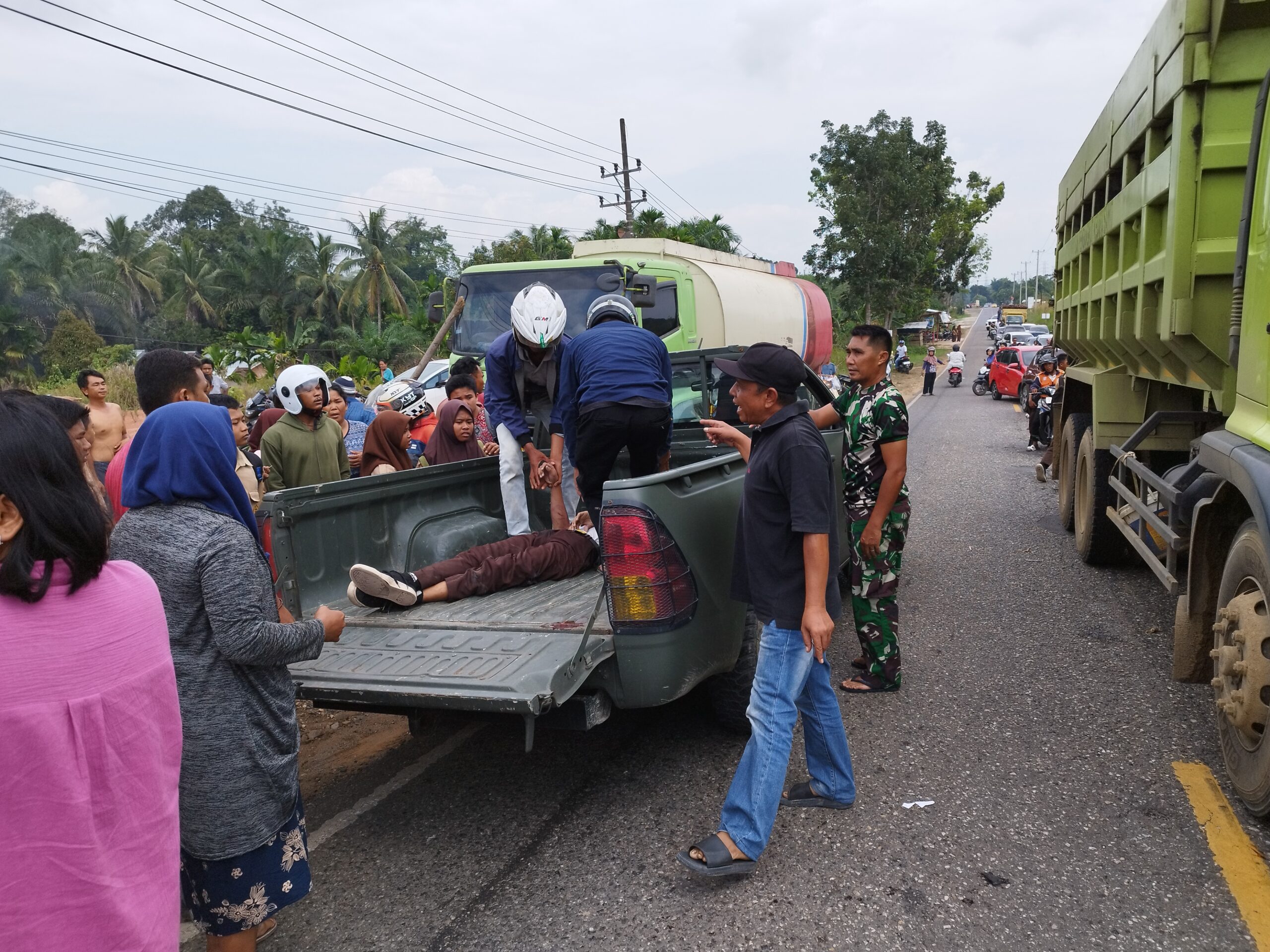 “Beruntung ada mobil Garnizun TNI lewat, sehingga warga bersama sama mengevakuasi korban kedalam mobil itu, untuk dibawa Rumah Sakit,”tukasnya.