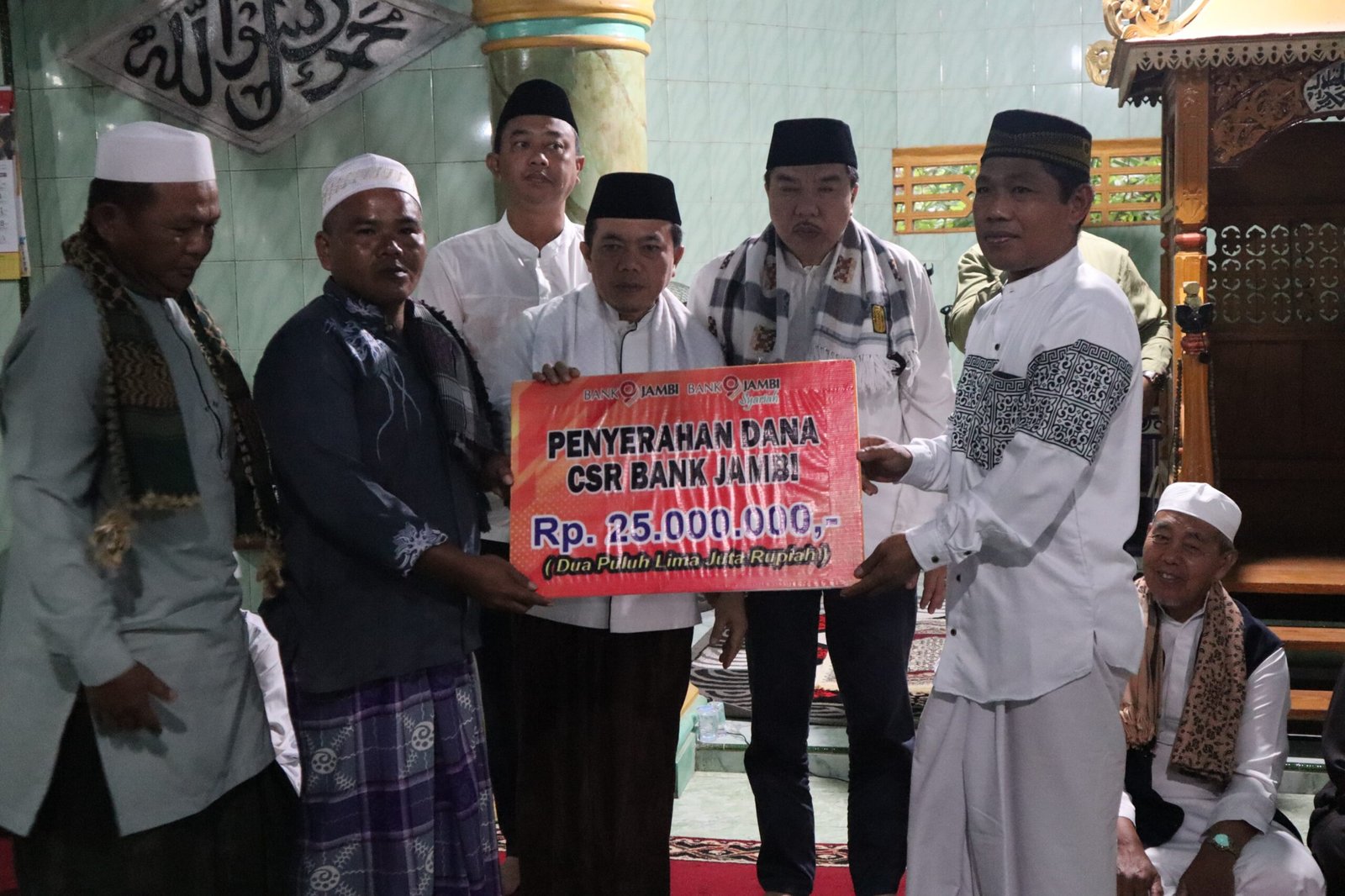 Usai sholat subuh, Al Haris memberikan bantuan dana Corporate Social Responsibility (CSR) dari Bank 9 Jambi sebesar Rp. 25.000.000 guna merenovasi masjid.