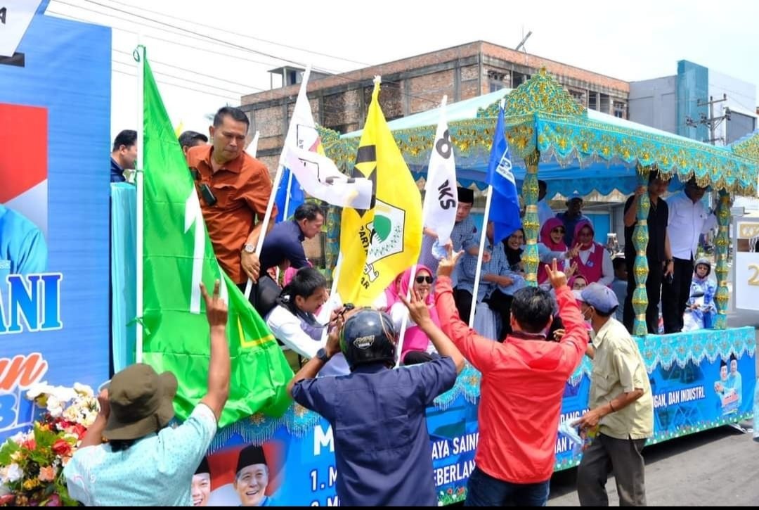Haris-Sani mengikuti pawai deklarasi Pilkada Damai menaiki mobil hias pengantin khas Jambi. Dan diikuti iringan kendaraan partai pendukung dan simpatisan Haris-Sani.