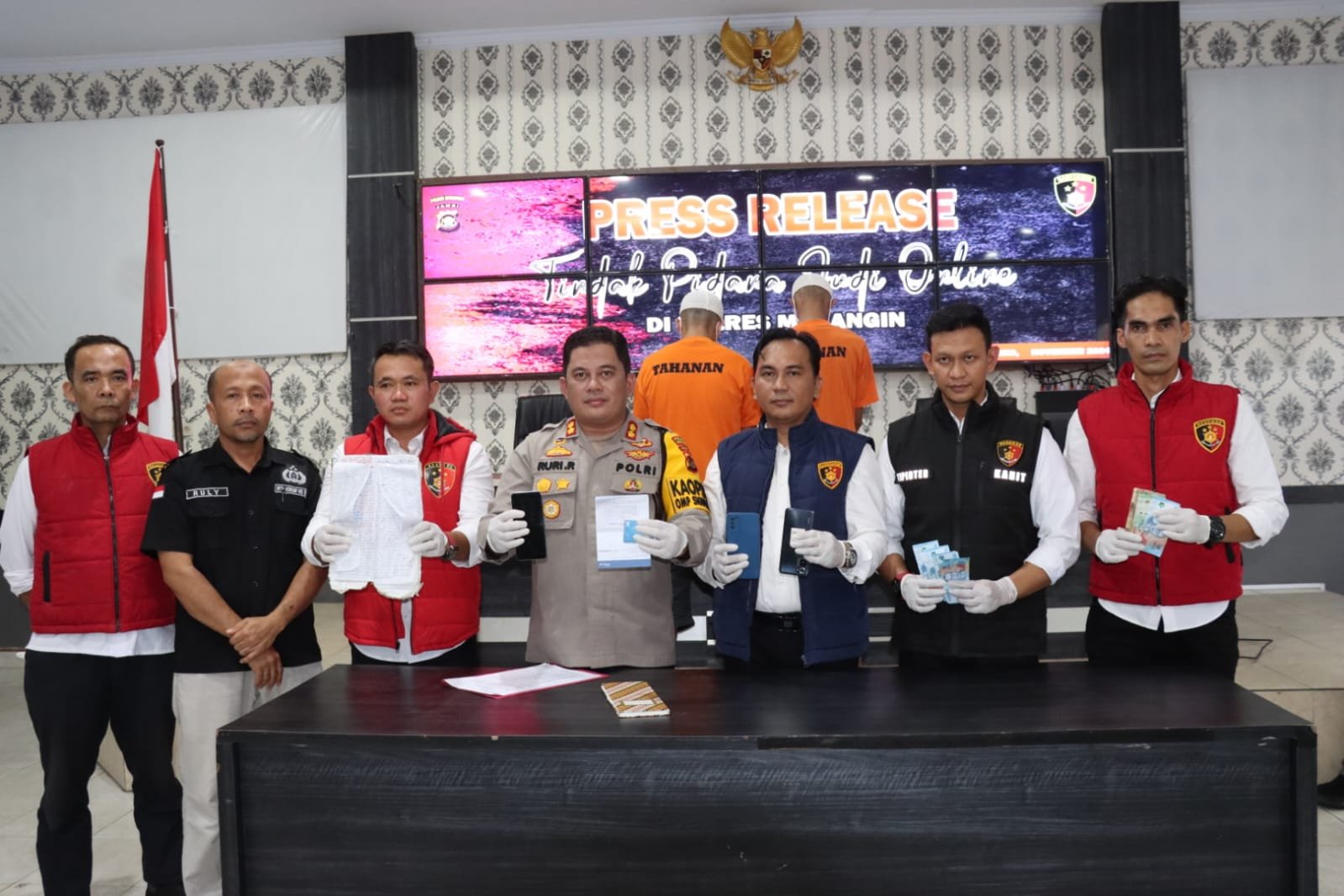 Dua diantara pelaku tersebut berinisial RR (28), tertangkap sedang melakukan transaksi perjudian melalui aplikasi online di sebuah rumah di RT 19, Kelurahan Pamenang, Kabupaten Merangin.