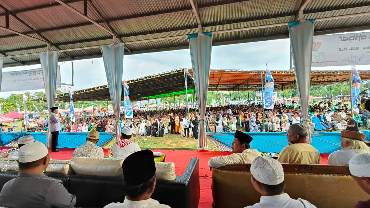 JurnalOne.com, MUARO JAMBI – Calon Gubernur Jambi nomor urut 2 Al Haris mengelar tabligh akbar bersama Ustadz kondang Das’ad Latif di Sebapo, Kecamatan Mestong, Kabupaten Muaro Jambi, Rabu (06/11/2024) sore.