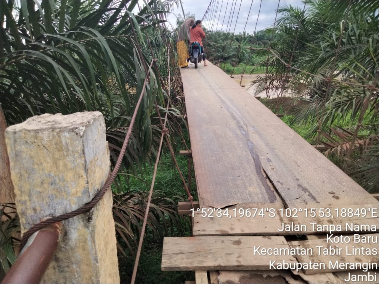 Kondisi ini tentunya membahayakan keselamatan warga dan berharap pemerintah secepatnya memperbaiki jembatan tersebut.
