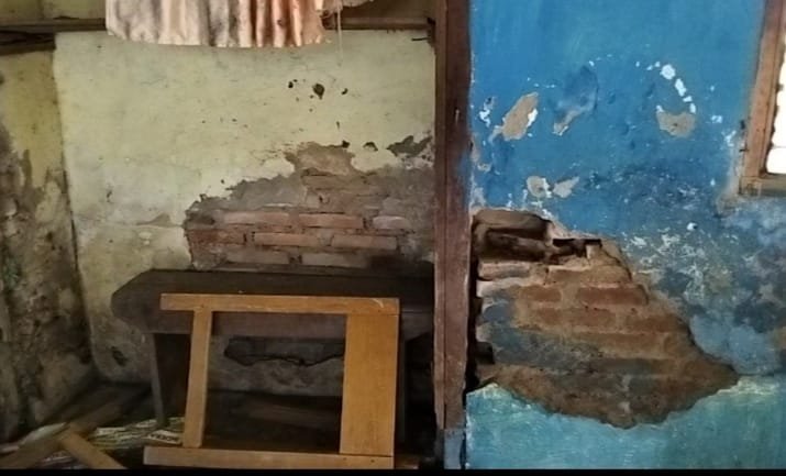 Zainab mengakui, selain keropos pada tiang bangunan, dinding ruang kelas belajar siswa ini juga mengalami dinding kelas banyak retak dan bolong.
