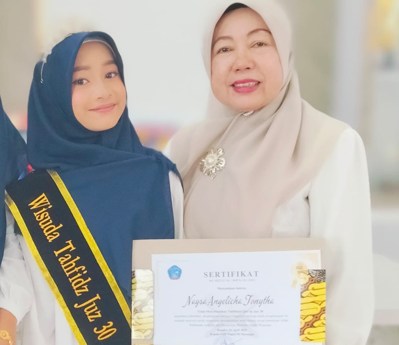 Ismalinda menambahkan, bahwa wisuda Tahfidz Al-qur’an ini sebagai bentuk apresiasi terhadap para siswa yang memiliki semangat dalam menghafal Al-quran sekaligus sebagai motivasi bagi siswa lain untuk lebih giat dalam melakukan hafalan Alquran.