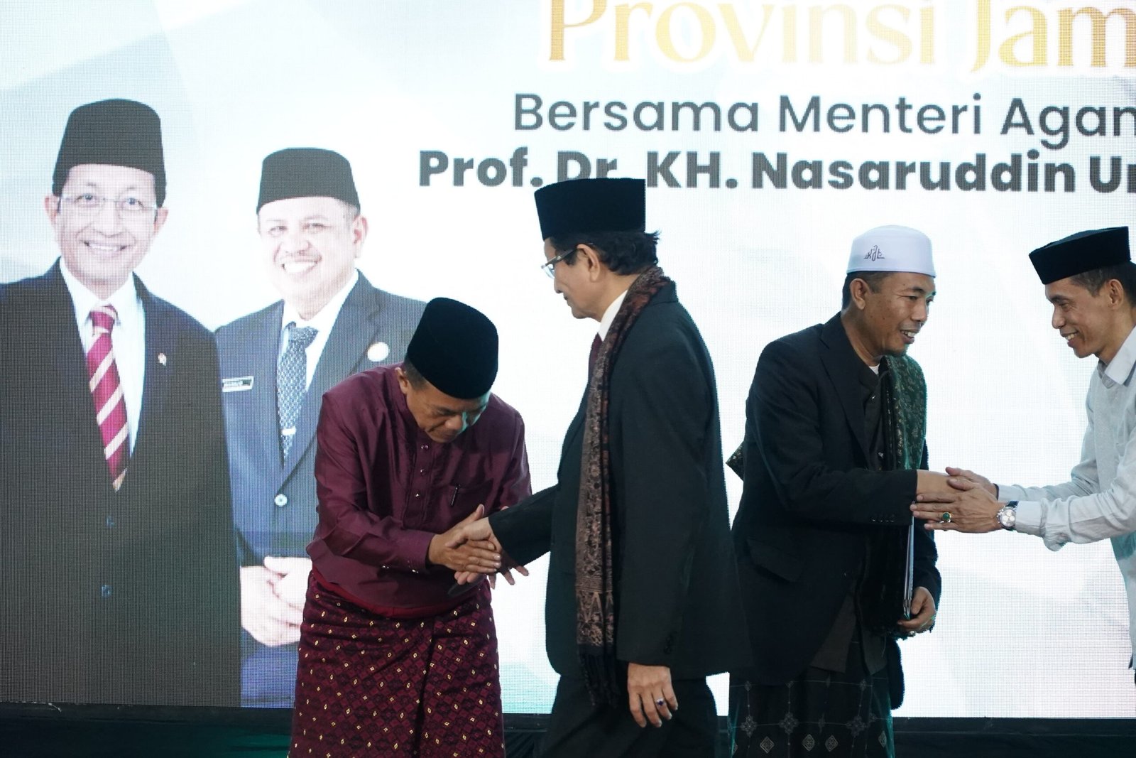 “Alhamdulillah ditengah kesibukan beliau tidak lupa dengan Jambi dan hari ini secara langsung hadir di Jambi. Kami mengucapkan terima kasih karena di tengah-tengah kesibukan beliau menteri agama yang baru selesai dari haji mengurus jamaah menyempatkan hadir di Jambi,” ujar Gubernur Al Haris.
