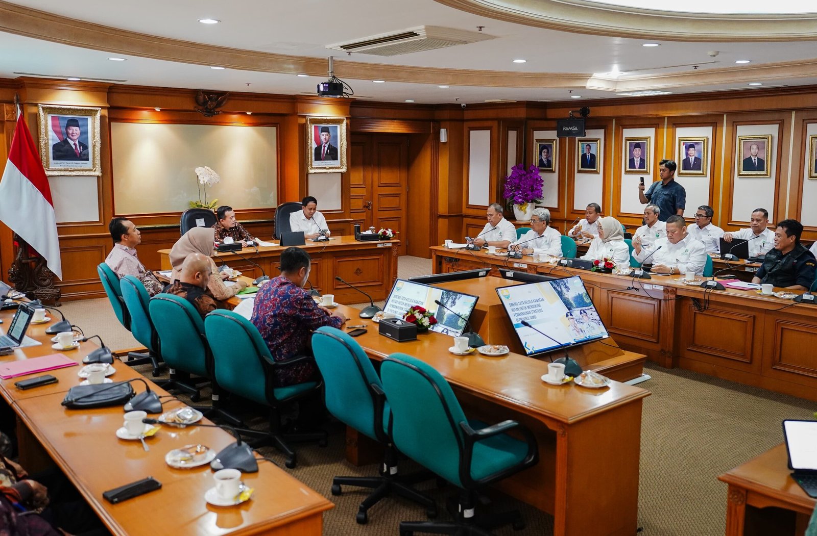 JurnalOne.com, JAKARTA – Gubernur Al Haris, bersama para Bupati dan Wali Kota se-Provinsi Jambi melakukan audiensi dengan Kementerian Kehutanan terkait kendala-kendala pada sektor kehutanan yang dihadapi Provinsi Jambi. Audiensi itu langsung disambut hangat Menteri Kehutanan Raja Juli Antoni beserta jajarannya ini berlangsung di Ruang Rapat Kementerian Kehutanan, Jakarta, Selasa (14/07/2025) kemaren.