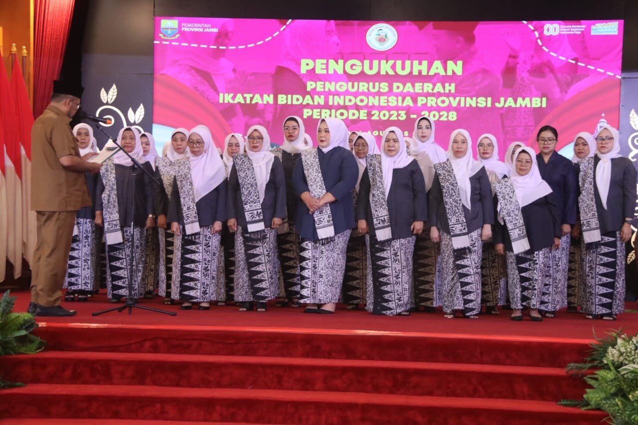 “Atas nama gubernur, saya mengukuhkan pengurus Ikatan Bidan Indonesia (IBI) daerah Provinsi Jambi periode 2023-2028, sesuai dengan arahan gubernur, yang mengamanatkan IBI sebagai mitra strategis pemerintah provinsi dalam upaya penurunan stunting, menjaga kesehatan ibu dan anak, serta mengurangi angka kematian ibu dan anak, dalam rangka peningkatan kualitas kesehatan secara keseluruhan,” ujar Sudirman.