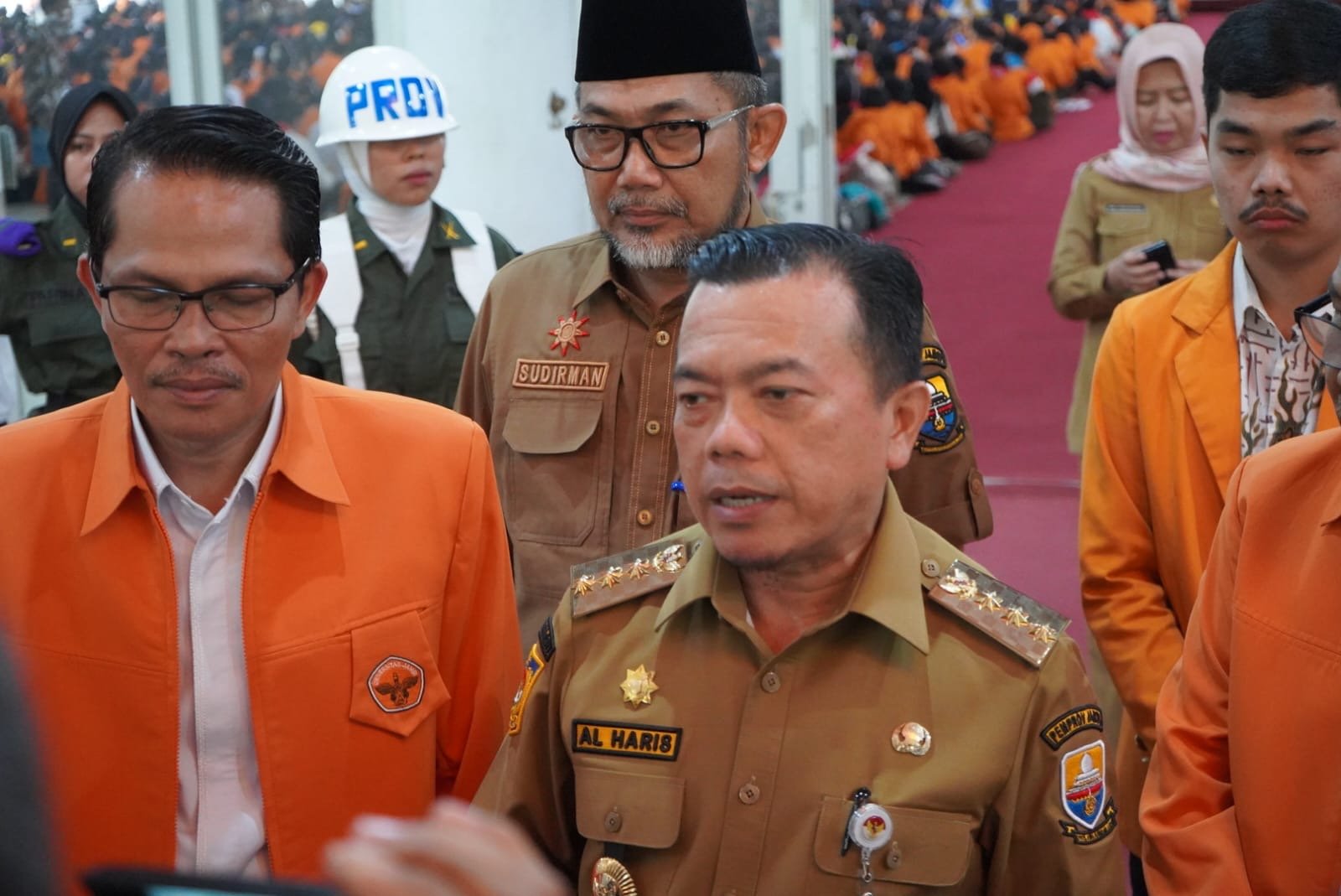 Dalam sambutan dan arahannya Gubernur Al Haris menyampaikan bahwa mulai hari ini para mahasiswa baru sudah resmi menjadi keluarga pinang masak (Universitas Jambi).