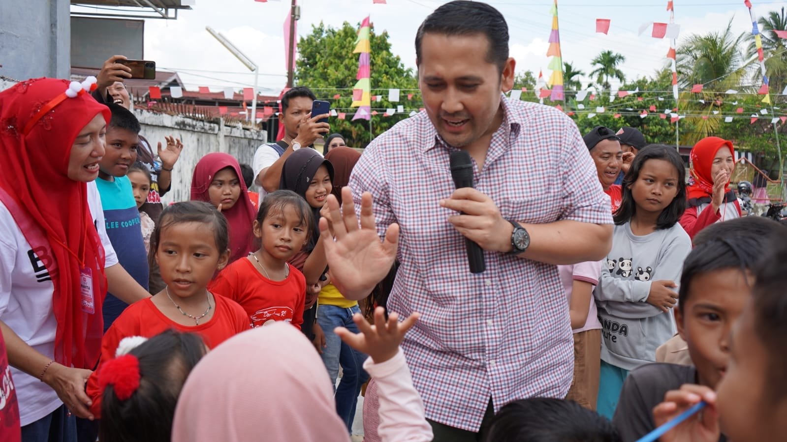 “’Ayo anak-anak semangat, siapa yang menang dapat hadiah,’’ujar Bupati kepada para anak-anak Kelurahan Dusun Bangko tersebut.