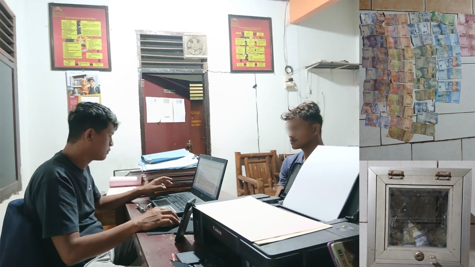 “ Tak butuh waktu lama, tersangka SFR alias KEMPUL akhirnya berhasil diamankan warga pada saat hendak melarikan diri. Ketika diamankan oleh warga, dikantong jaket milik pelaku ditekukan uang sejumlah Rp. 947.000.- dan saat diintrogasi uang itu, diambil oleh tersangka dari 2 kotak amal yang ada didalam toko tersebut. Akhirnya pelaku dan barang bukti langsung diserahkan ke Polsek Pamenang,” tambah Ruly.