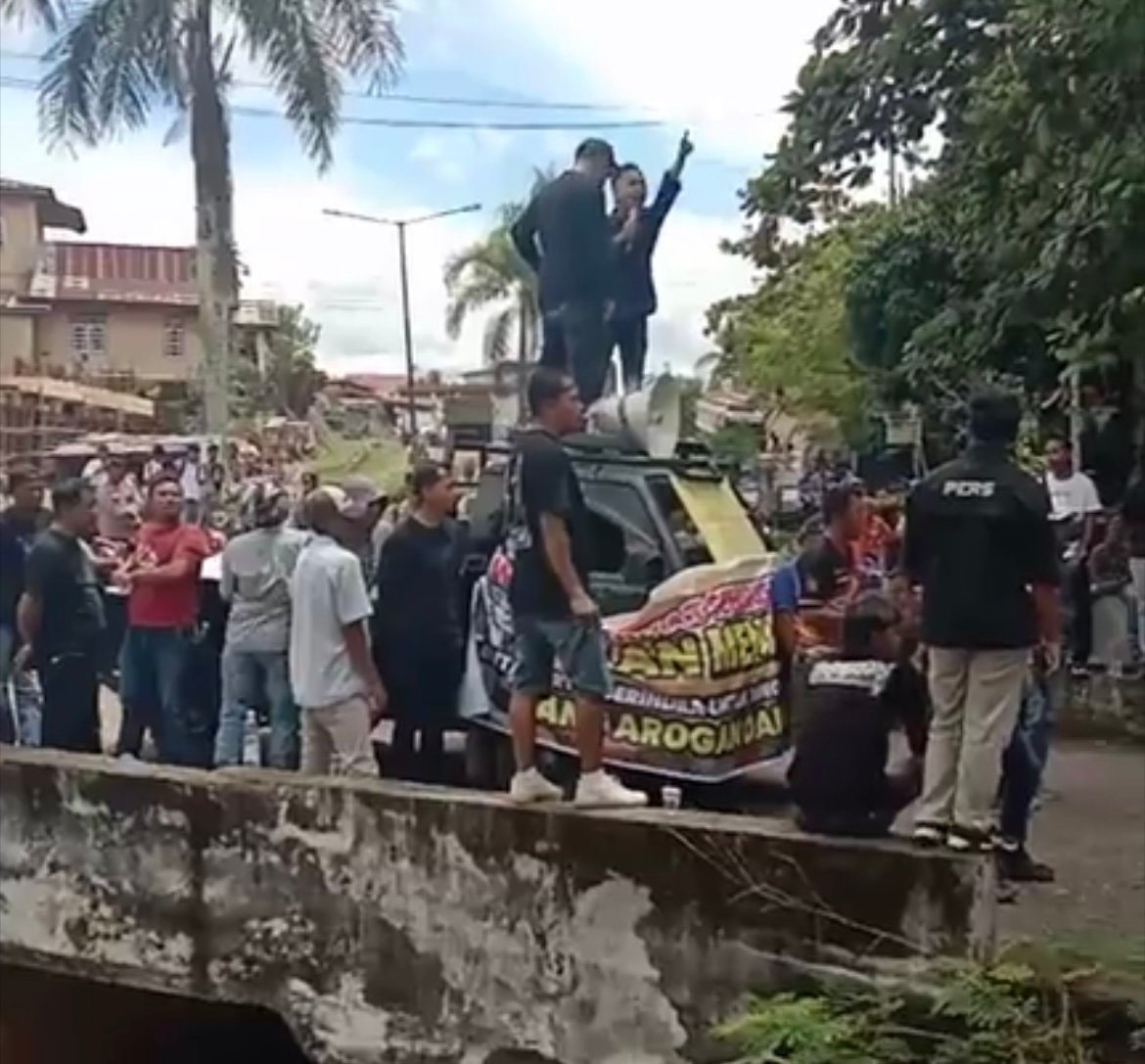 JurnalOne.com, BANGKO – Ratusan masa yang menamakan Front Dusun Bangko (FDB) menggelar aksi unjuk rasa didepan kantor DPRD Kabupaten Merangin, Senen ((08/09/2025) sekira jam 10:00 WIB, pagi.