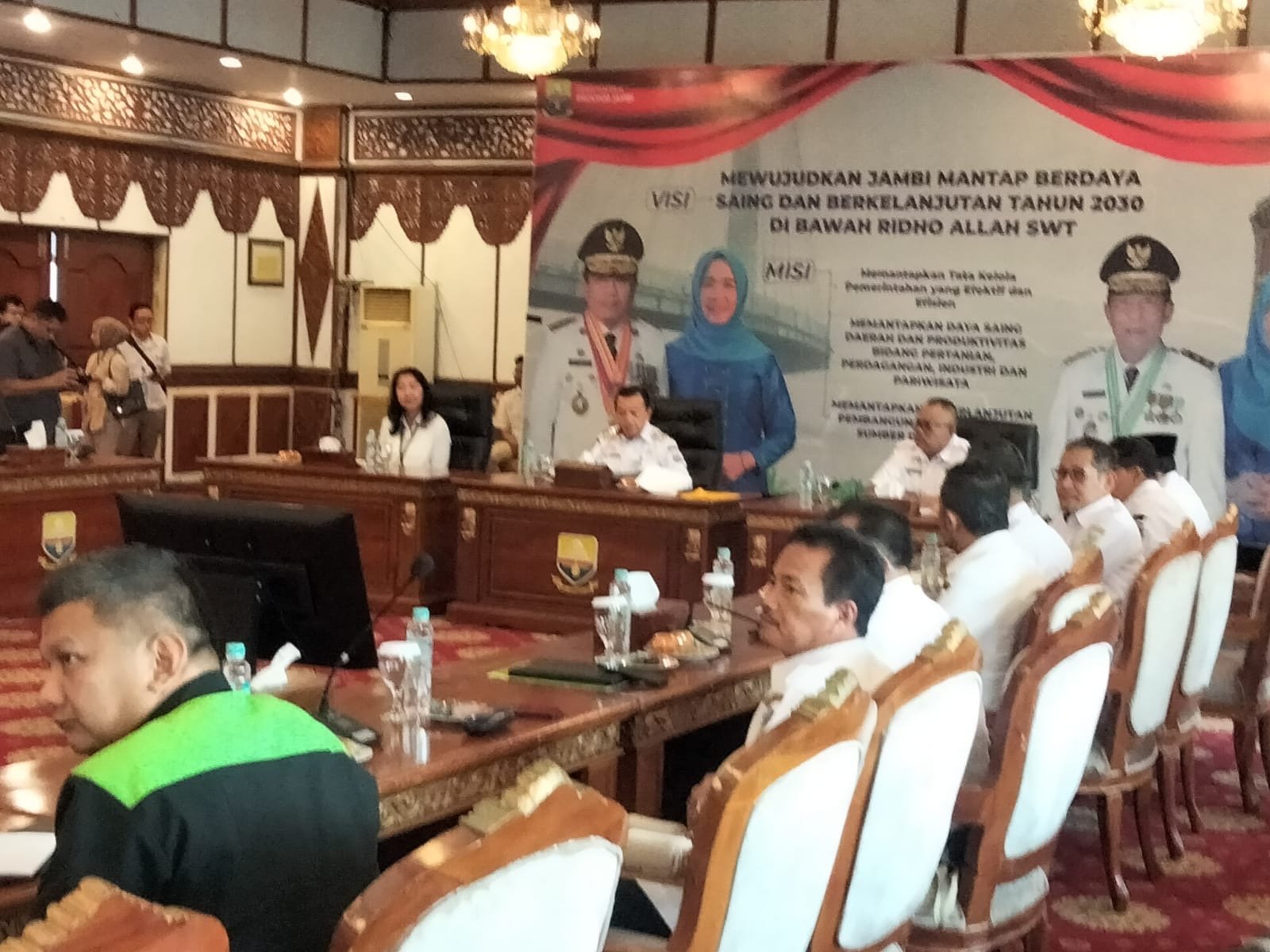 Tampak hadir Direktur Jenderal Perumahan Perkotaan Kementerian Perumahan dan Kawasan Permukiman yang diwakili Direktur Peningkatan Kualitas Perumahan Perkotaan Noviza Tumenggung, ST, MT., Wali Kota Jambi, Wali Kota Sungai Penuh, Wali Kota Bengkulu, serta para OPD Provinsi Jambi terkait.