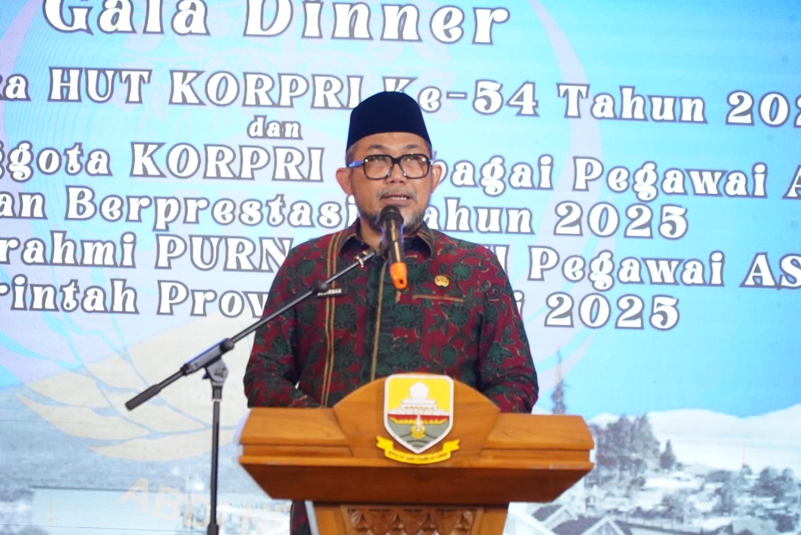 Acara berlangsung hangat dan penuh apresiasi, dipimpin langsung oleh Sekretaris Daerah Provinsi Jambi sekaligus Ketua KORPRI Provinsi Jambi, Sudirman dilaksanakan di Auditorium Rumah Dinas Gubernur Jambi, Selasa (02/12/2025) malam.