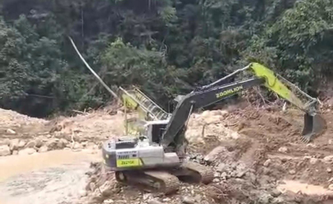 “Aktivitas tombang emas menggunakan alat berat merk Zomlion mudik aik tu, alat Riki, Kades kami Ngaol,”sebut DR (42) warga Desa Ngaol kemedia ini.
